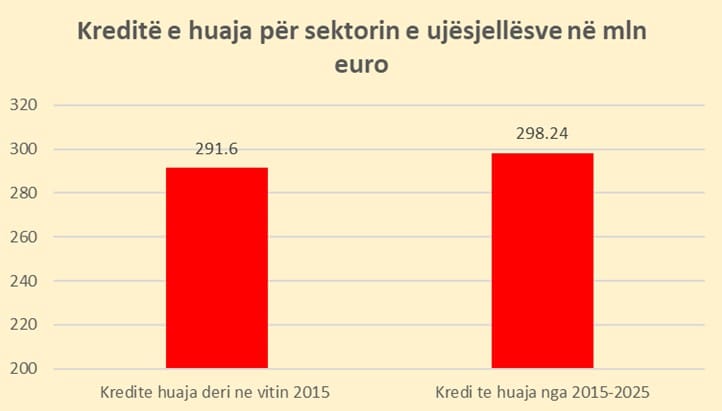 Nga rreth qindra projekte të financuara me kredi të huaja deri në vitin 2025, sektori i ujësjellës-kanalizimeve ka përthithur rreth 599 milionë euro në periudhën 1990–2025.