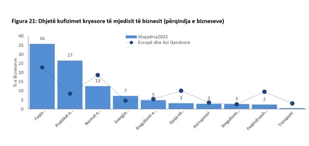 Sipas raportit, ky fenomen prek të gjitha kategoritë e bizneseve, por është më shqetësues te ndërmarrjet e mëdha, ku pothuajse gjysma e tyre e identifikojnë si barrierën kryesore.