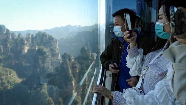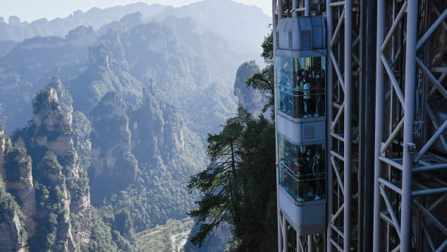Ashensori Bailong prej xhami 326 metra i gjatë u ndërtua në faqen e një shkëmbi në parkun kombëtar dhe ofron pamje mahnitëse të formacioneve karstike.