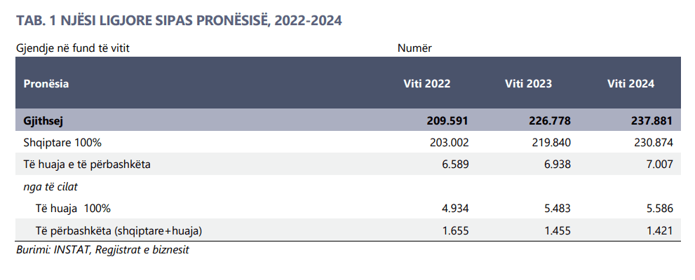 Numri i ndërmarrjeve të huaja dhe të përbashkëta u rrit shumë pak në vitin 2024 me vetëm 1 për qind në raport me vitin paraprak. Sipas të dhënave të sotshme të INSTAT Në fund të vitit 2024, numri i ndërmarrjeve të huaja dhe të përbashkëta arriti në 7,007 nga 6,938 që ishin në 2023.