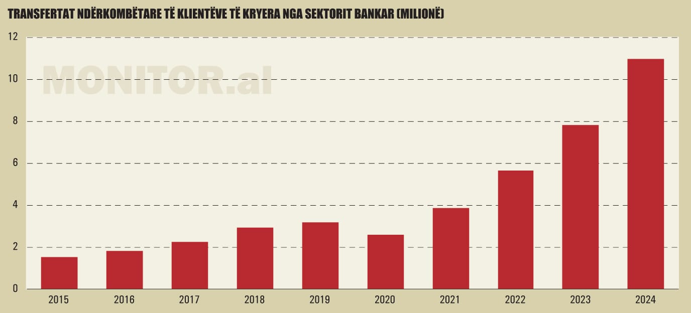 Numri i transfertave ndërkombëtare hyrëse ka shënuar nivelin më të lartë historik, ndërkohë që është rritur me pesë herë krahasuar me vitin 2019, përpara pandemisë. Edhe për vitin 2024, rritja ishte mjaft e lartë si në segmentin e bizneseve, ashtu edhe në atë të individëve.