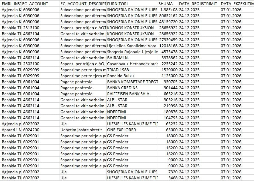 Këto janë vetëm dy shembuj, teksa shumica e pagesave nga thesari në dy javët e para të janarit 2026 po bëhen për faturat e dhjetorit 2025.