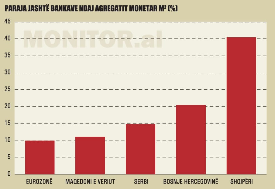 Të dhënat e mësipërme tregojnë qartë se Shqipëria ka një peshë shumë më të lartë të parasë jashtë bankave, jo vetëm në krahasim me Eurozonën, por edhe me ekonomitë fqinje të Rajonit.