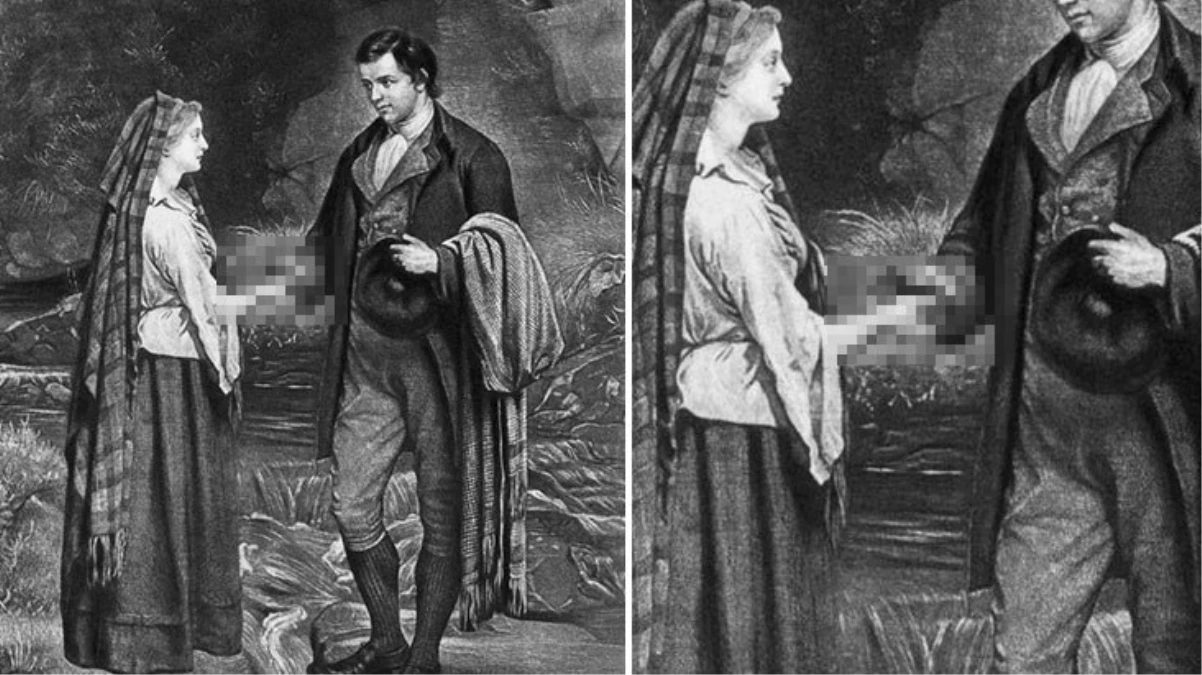 Në pikturën, e cila tregon poetin skocez Robert Burns dhe të dashurën e tij, Mary Campbell, një objekt drejtkëndor i errët që ata të dy mbajnë në dorë, është krahasuar me një iPhone në mediat sociale.