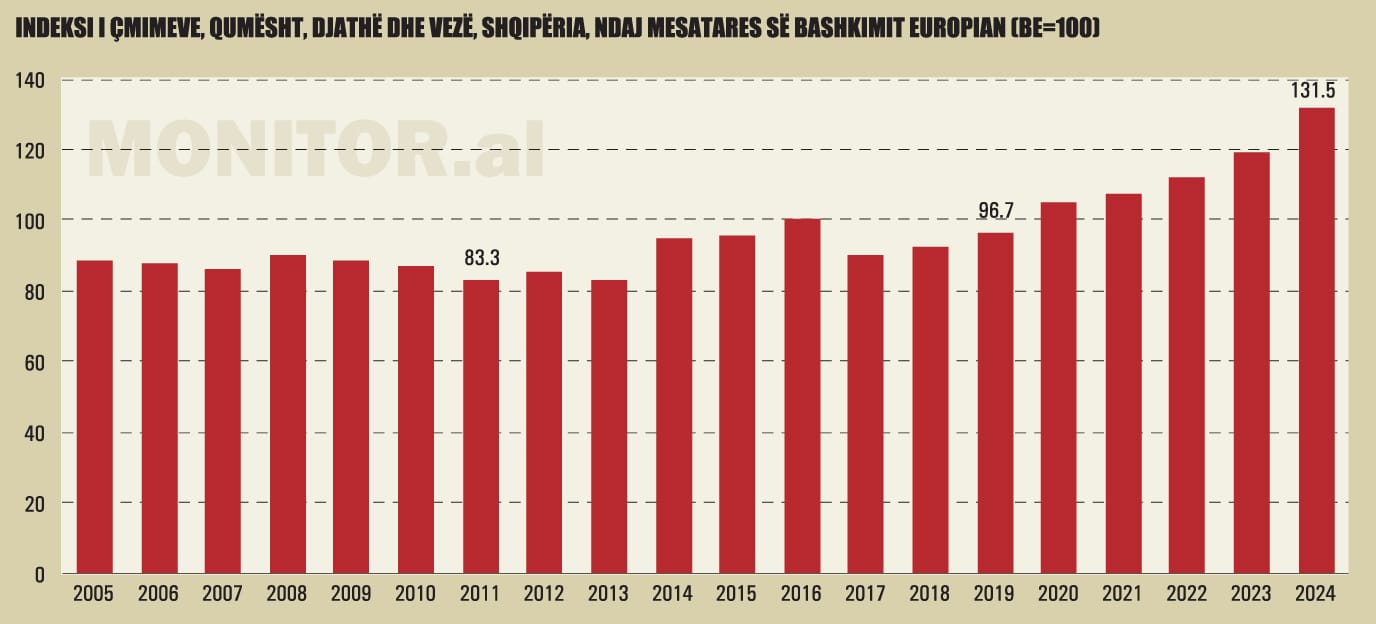 Sipas renditjes së Eurostat, Shqipëria është e katërta në Europë për çmimet më të shtrenjta të treguesit “qumësht, djathë dhe vezë”, pas Irlandës (171.7%), Zvicrës (147.2%), Norvegjisë (132%).