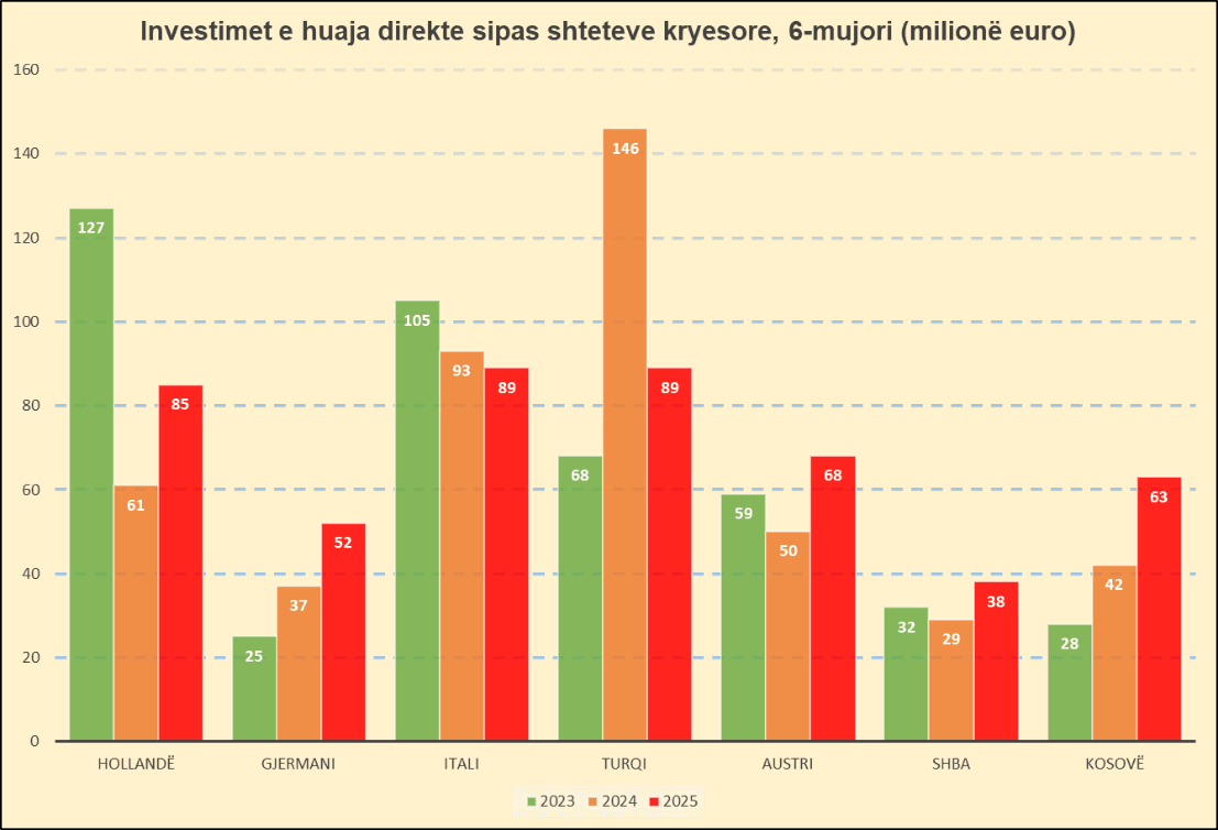 Turqia dhe Italia kryesuan investimet e huaja direkte për 6-mujorin e parë të këtij viti.