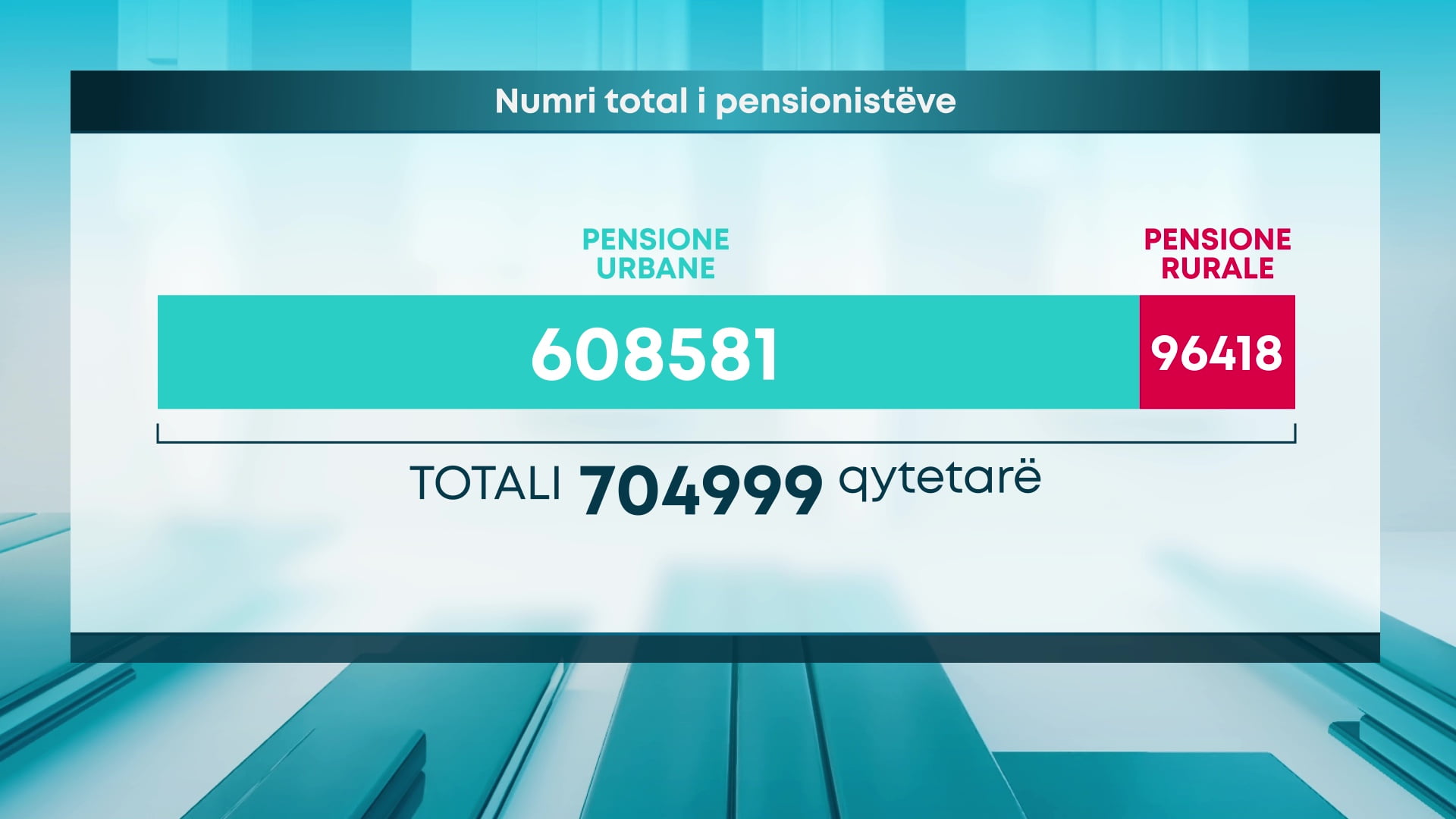 Konkretisht, deri në fund të vitit 2023 në skemën e pensioneve rezultonin rreth 705 mijë qytetarë, nga të cilët 608 581 pensione urbane dhe 96 418 pensione rurale.
