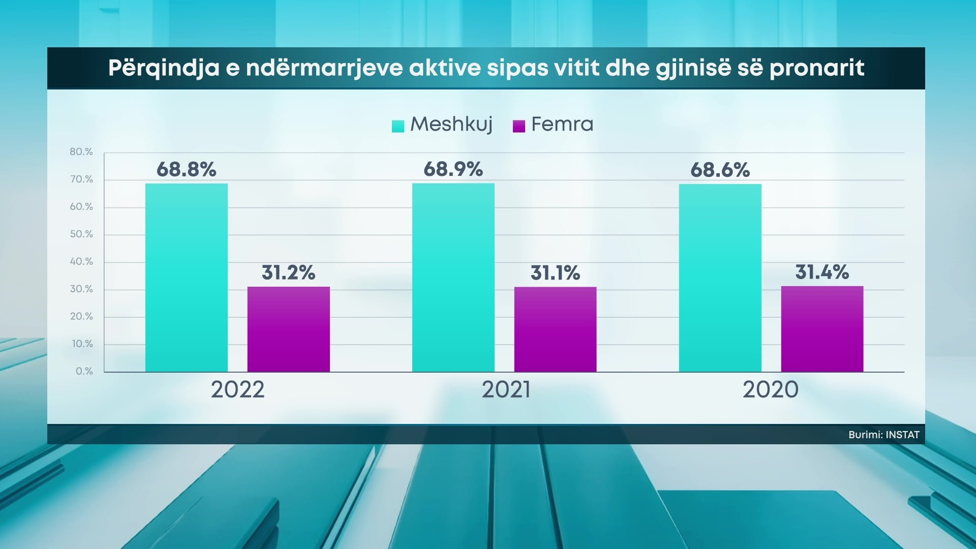 Në vitet pasuese, përkatësisht në 2021, këto shifra pësuan një rritje thuajse të papërfillshme për meshkujt ku këto të fundit administronin 68.9% të ndërrmarrjeve dhe femrat 31.1% të tyre. Ndërkohë, në vitin që lamë pas, pra vitin 2022, janë 68.8% të ndërmarrjeve të cilat administrohen nga meshkujt dhe 31.2% që dejtohen nga femrat .