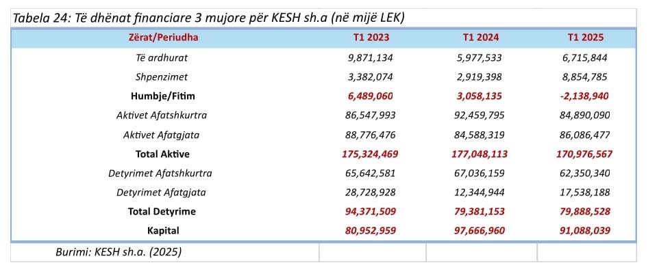 Të ardhurat e KESH pësuan rritje vjetore me 12 për qind në tremujorin e parë 2025 duke arritur në 6.7 miliardë lekë, por shpenzimet pësuan rritje të fortë me rreth 200 % si rrjedhoje e shpenzimeve më të larta për blerjen e energjie.
