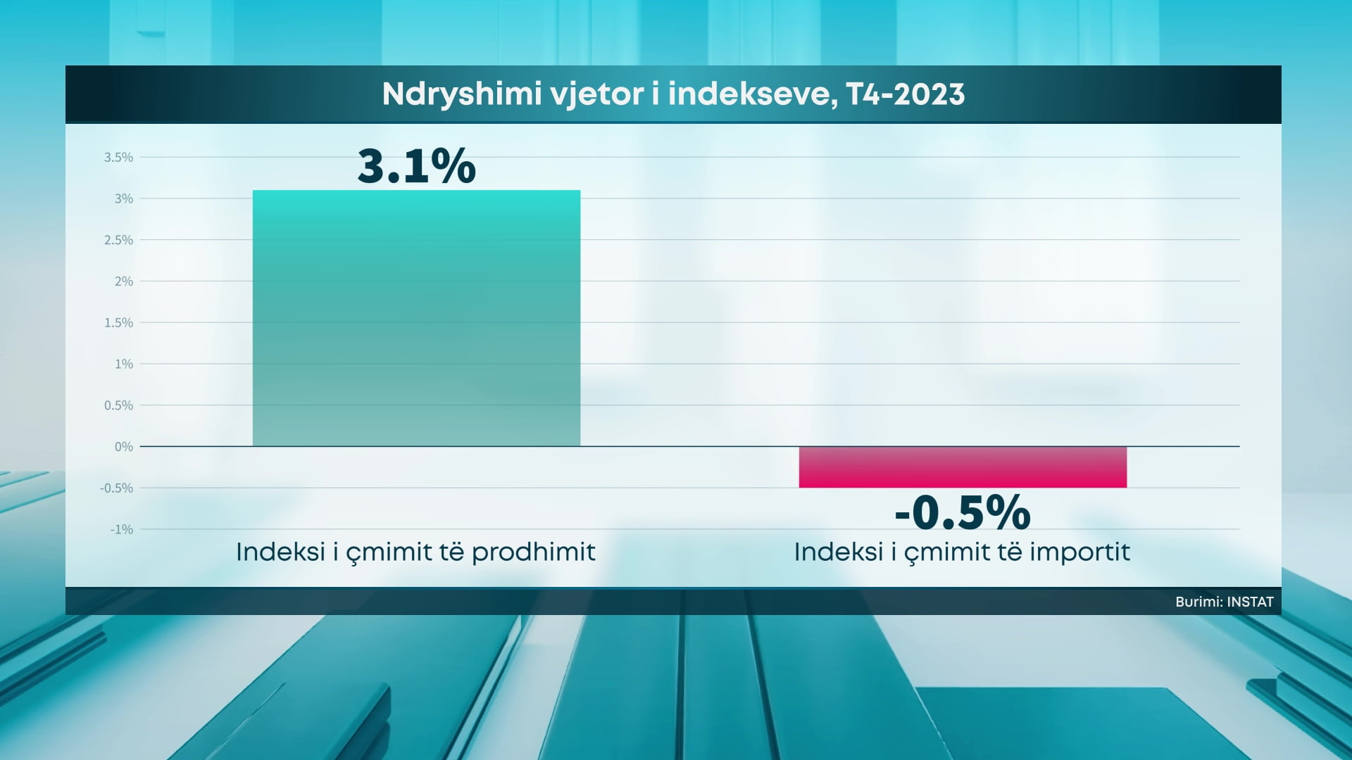 Bizneset prodhuese vazhdimisht po përballen me një shtrenjtim të kostos së prodhimit të mallrave. Sipas INSTAT, në tremujorin e katërt të vitit 2023, Indeksi i Çmimeve të Prodhimit arriti 131.6 kundrejt vitit 2020 si periudha bazë. Në terma vjetorë shohim se ky tregues është rritur me 3.1%.