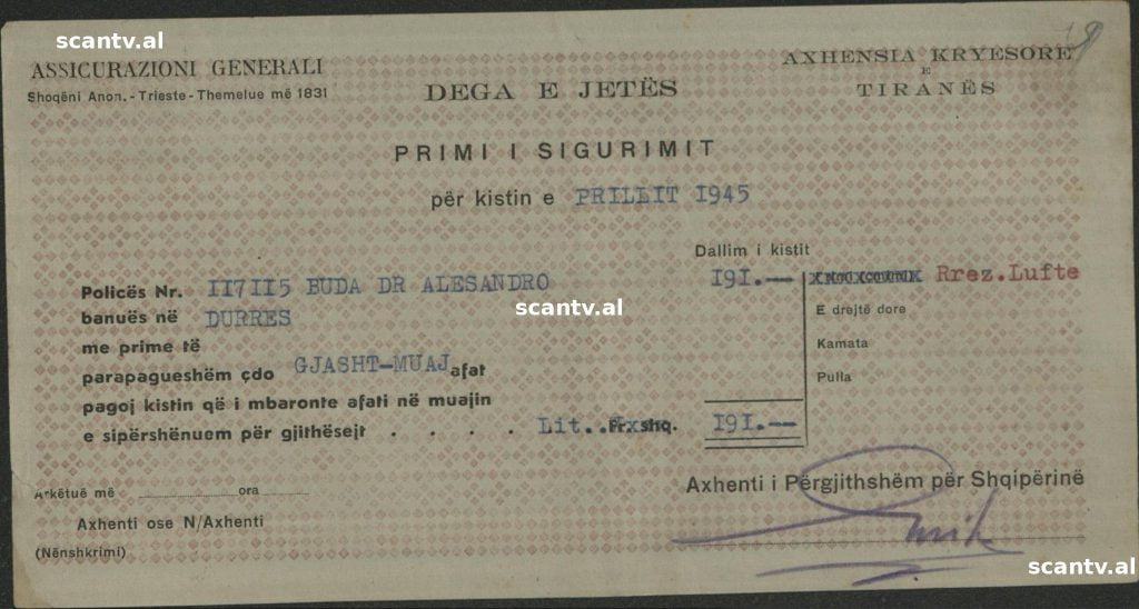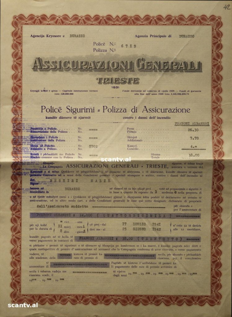 Më e njohura është “Generali Assicurazioni” e Triestes, një kompani shumë e njohur e themeluar në vitin 1831. Prezenca fillestare e kësaj kompanie në Shqipëri do të bëhej përmes agjentëve. Përfaqësues i kompanisë ishte Vincenzo Rocco, i cili kishte një kompani në Durrës me 4 punonjës dhe që kishte aktivitet në fushën e shitjes së policave të sigurimit të jetës dhe nga zjarri.