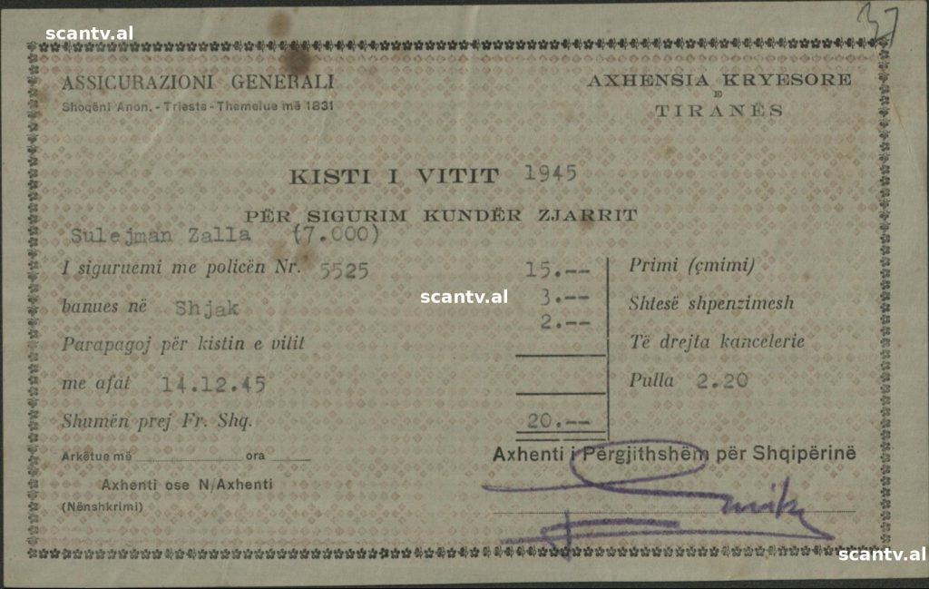 Më e njohura është “Generali Assicurazioni” e Triestes, një kompani shumë e njohur e themeluar në vitin 1831. Prezenca fillestare e kësaj kompanie në Shqipëri do të bëhej përmes agjentëve. Përfaqësues i kompanisë ishte Vincenzo Rocco, i cili kishte një kompani në Durrës me 4 punonjës dhe që kishte aktivitet në fushën e shitjes së policave të sigurimit të jetës dhe nga zjarri.
