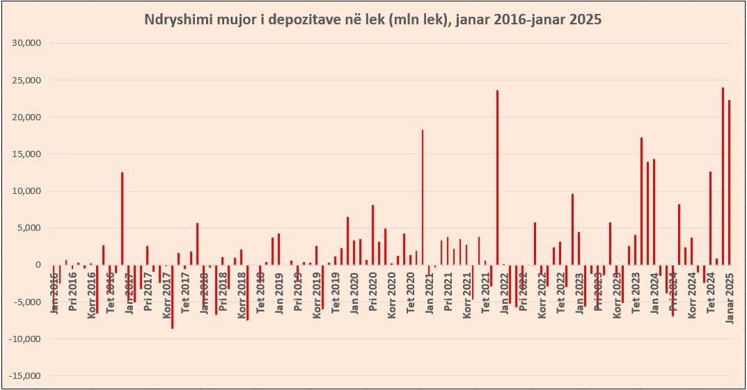 Ky është muaji i dytë radhazi me shtim të fortë të kursimeve në lekë.
