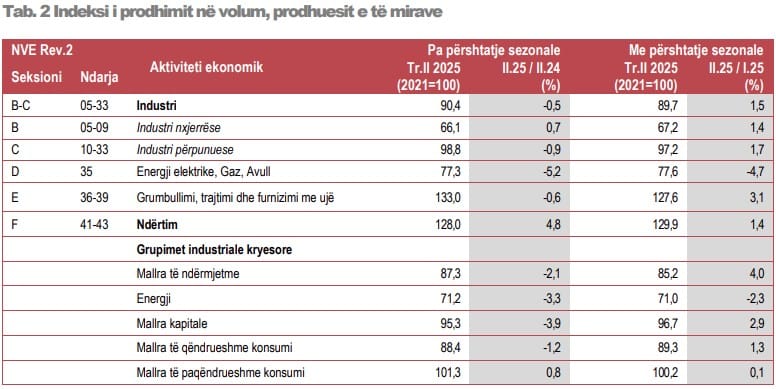 Të dhënat e institutit të Statistikave nënvizojnë sfidat që po kalon industria, e cila mbetet e ndjeshme ndaj tregjeve të jashtme dhe kostove të prodhimit, ndërsa ndërtimi po mbështet aktualisht ritmin e rritjes ekonomike përmes investimeve të larta dhe kërkesës së qëndrueshme në tregun e banesave.