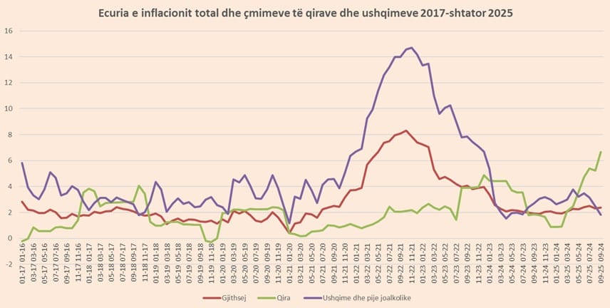 Në shtator 2025, përbërësi kryesor i inflacionit ishin çmimet e qirave; më parë, rritja mesatare e çmimeve dominohej nga ushqimet.