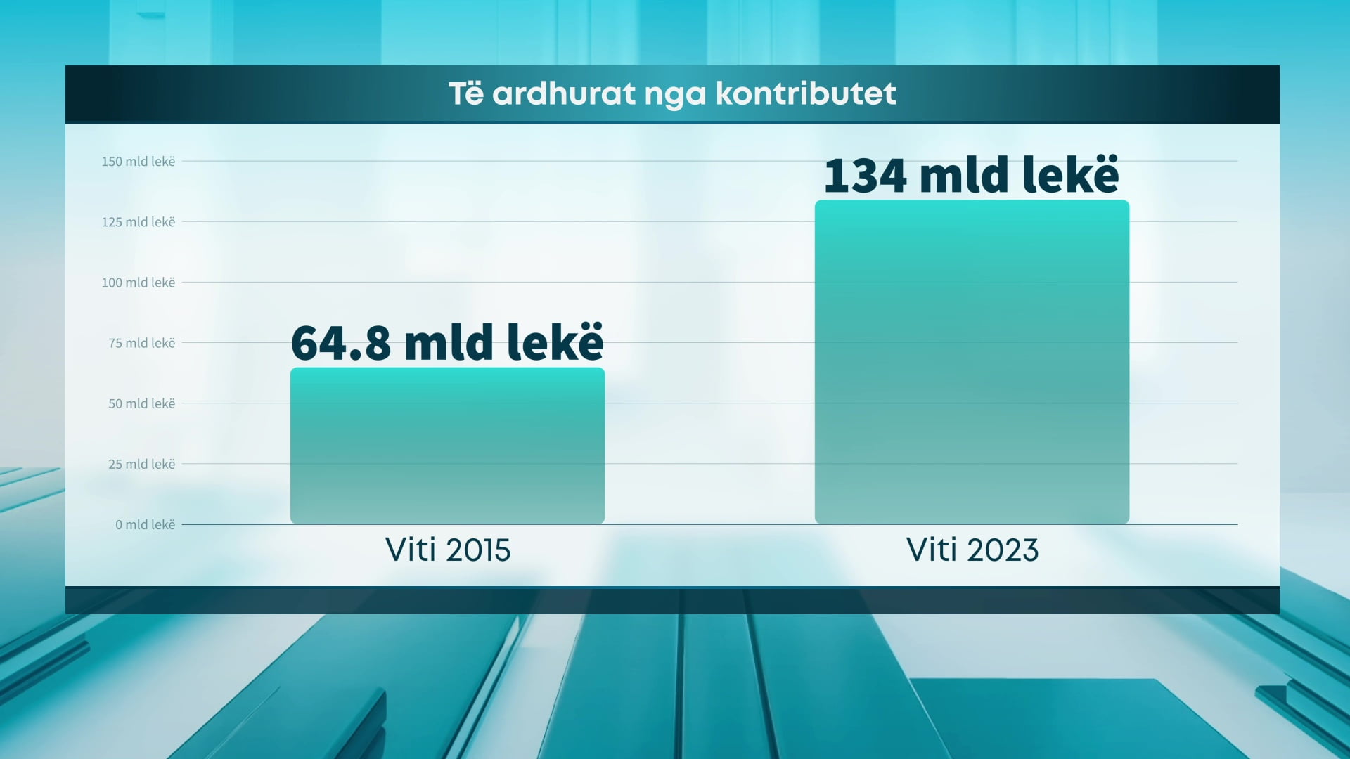 Të ardhurat kontributive totale janë rritur nga 64.8 miliardë lekë në vitin 2015 kanë arritur në 134 miliardë lekë në vitin 2023 ose më shumë se dyfish në më pak se 10 vjet. Kjo rritje e të ardhurave kontributive ka ndikuar në qëndrueshmërinë financiare të skemës duke ulur transfertën e buxhetit të shtetit në drejtim të skemës së pensioneve dhe ulur deficitin e pensioneve.