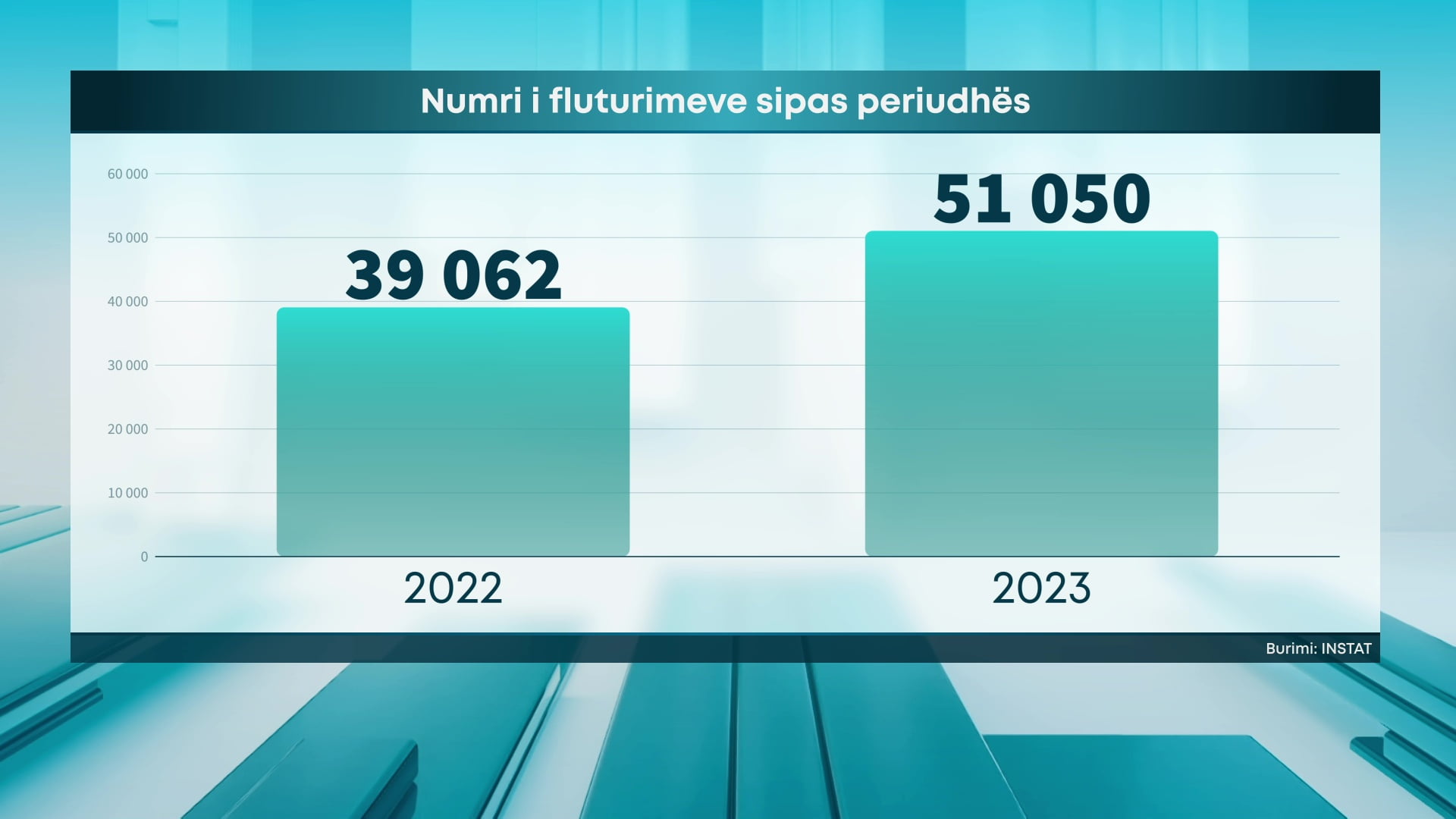 Sipas të dhënave më të fundit të “Institutit të Statistikave”, numri i fluturimeve në vendin tonë për vitin 2023 është regjistruar në 51 mijë, duke shënuar një rritje me 31%, krahasuar me një vit më parë.