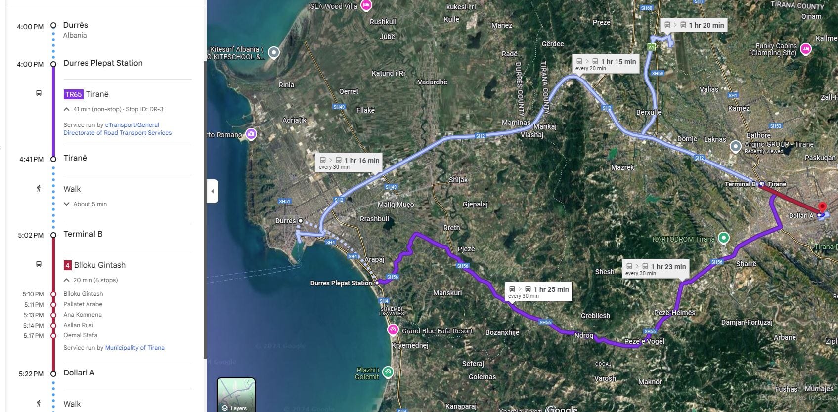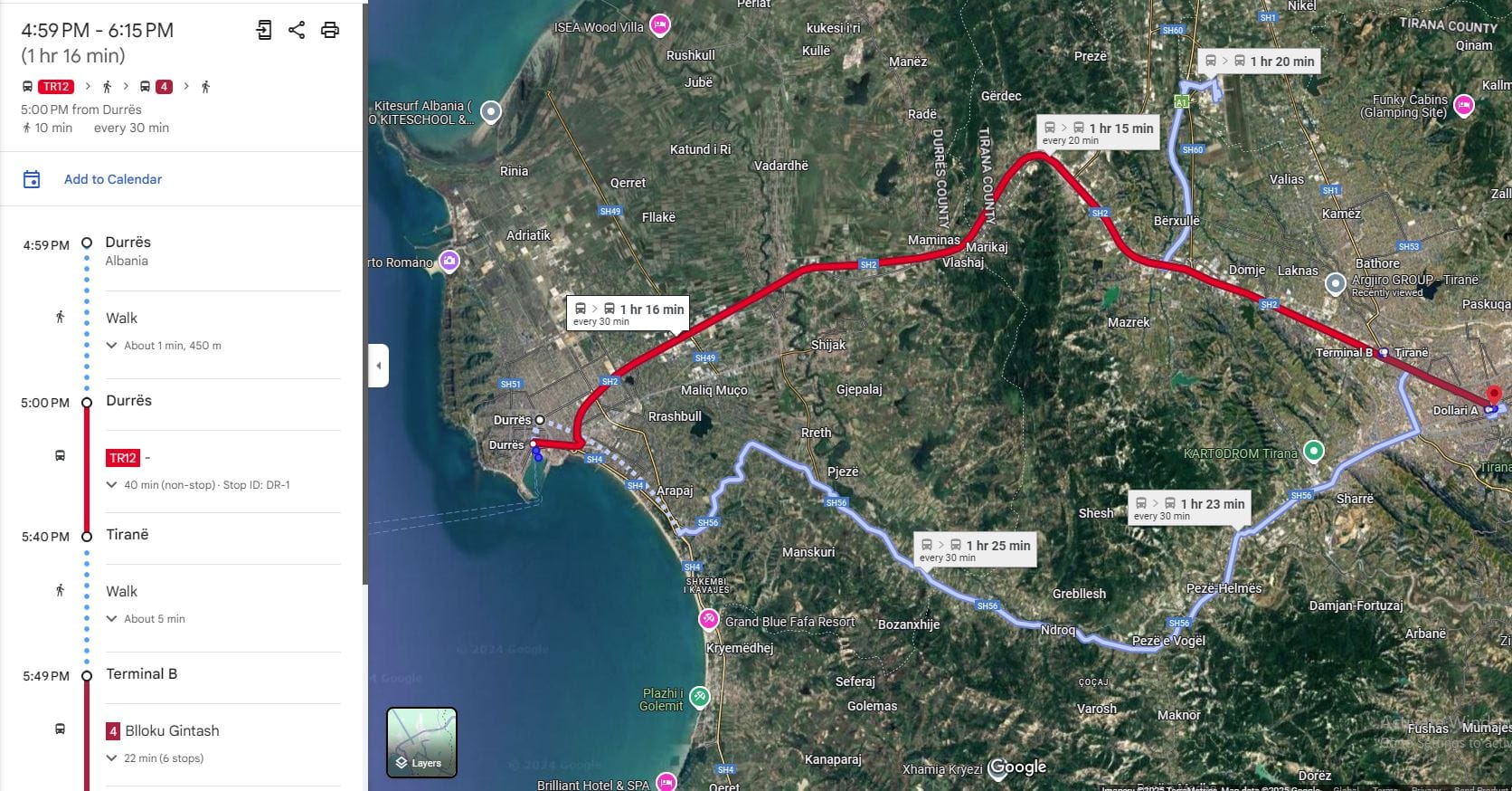 Shqipëria me rritjen e interesit si destinacion turistik e ka pasur të nevojshme koordinimin e transportit publik në Google Maps duke qenë se edhe mundësitë që ofron janë të kufizuara duke u ndalur vetëm tek autobusat pasi linja hekurudhore funksionale mungojnë. Gjithsesi më mirë vonë se kurrë dhe 2025 të paktën në këtë aspekt vjen me një lajm të mirë./ N.Maho