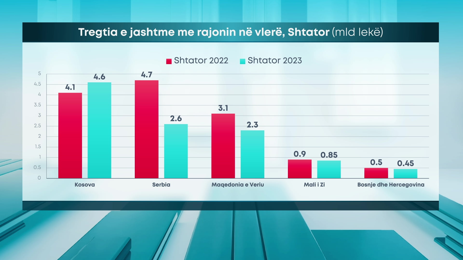 Në analizë janë marrë shkëmbimet në vlerë dhe në sasi me Kosovën, Serbinë, Maqedoninë e Veriut, Malin e Zi dhe Bosnje Hercegovinën, ku rezulton se efektet e kursit duket se nuk kanë prekur vetëm Kosovë, pasi është i vetmi shtet me të cilin shkëmbimet në vlerë dhe në sasi janë rritur ndjeshëm në muajin Shtator, duke arritur në 4.6 miliardë lekë. Ndërsa shtetet e tjera kanë pasur një rënie sa i takon tregtisë së jashtme me vendin tonë, ku më së shumti vihet re në shkëmbimet me Serbinë, që edhe pse në sasi janë rritur, në vlerë thuajse janë përgjysmuar. Bosnje-Hercegovina renditet në vendin e fundit në rajon sa i takon shkëmbimeve tregtare me Shqipërinë.
